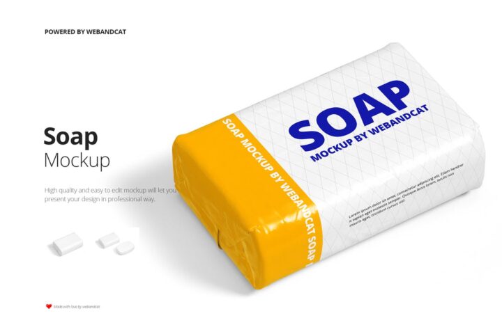 High quality and easy to edit Soap Mockup will let you present your graphic design in professional way. Just place your design inside the smart-object and save the changes for a flawless result.