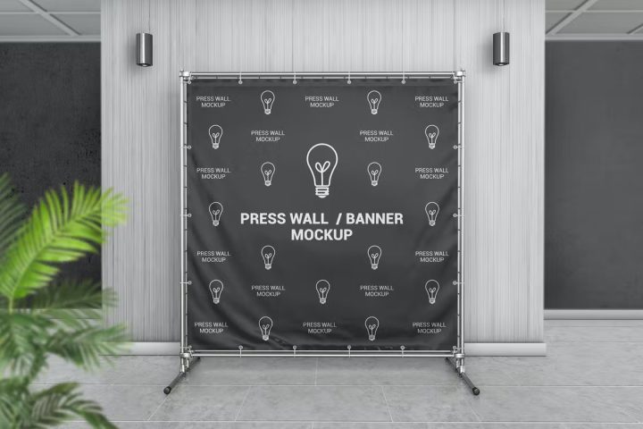 Banner ,Stand, Square, Mockup, Showcase, Advertising, Wall, Indoor, Outdoor ,Branding ,Presswall, Construction, Metallic, Vinyl ,Grommet ,gfx