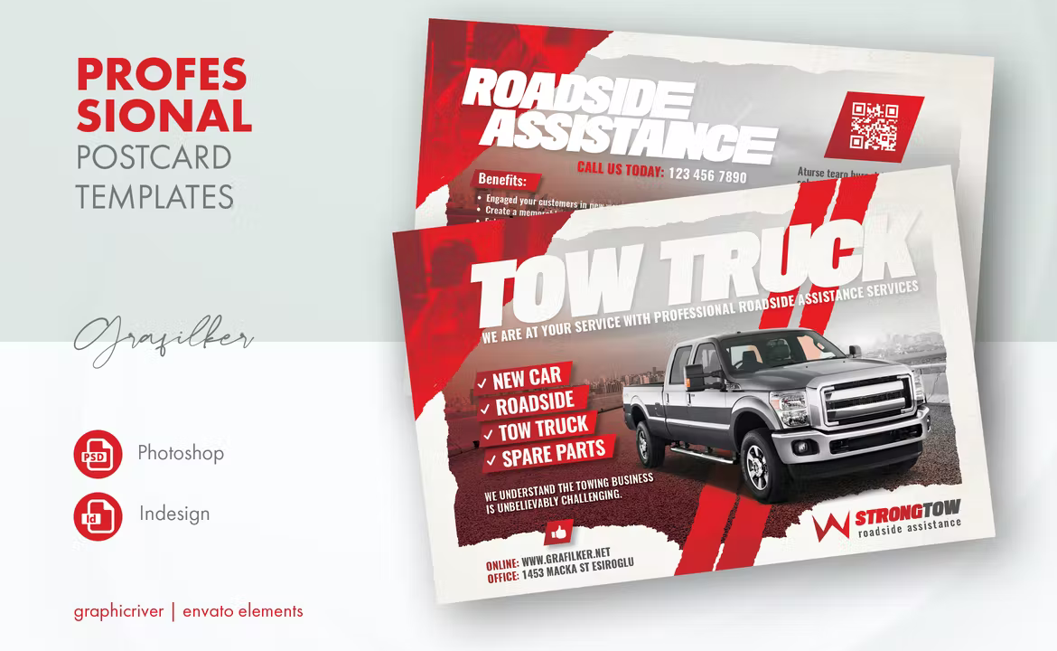 Tow Truck Postcard Templates