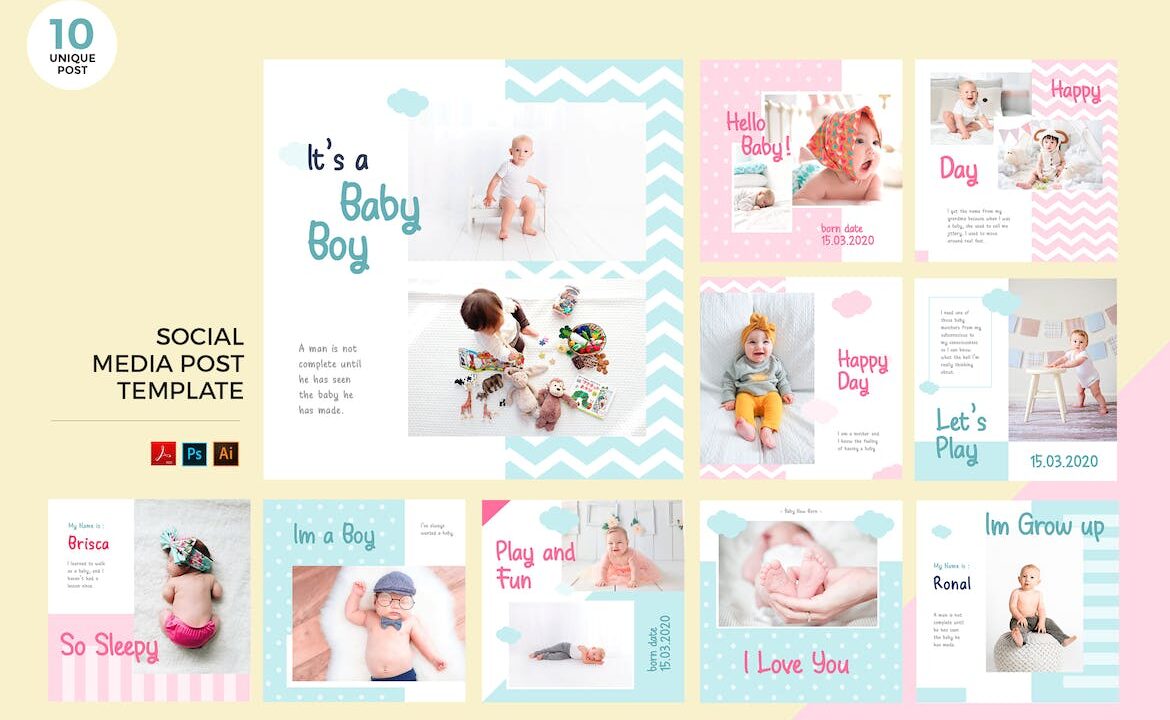 Newborn Baby Social Media Kit PSD & AI Template