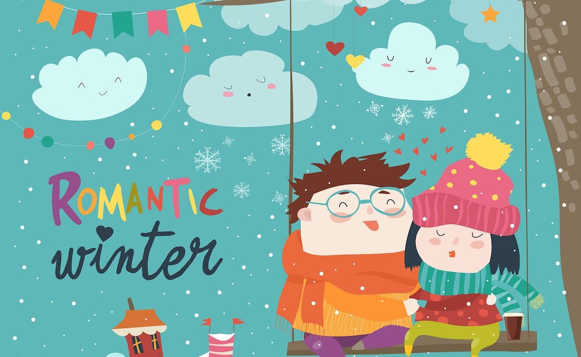 Cute winter cartoon couple swinging Vector