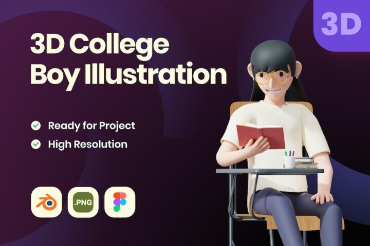 3D College Boy Illustration