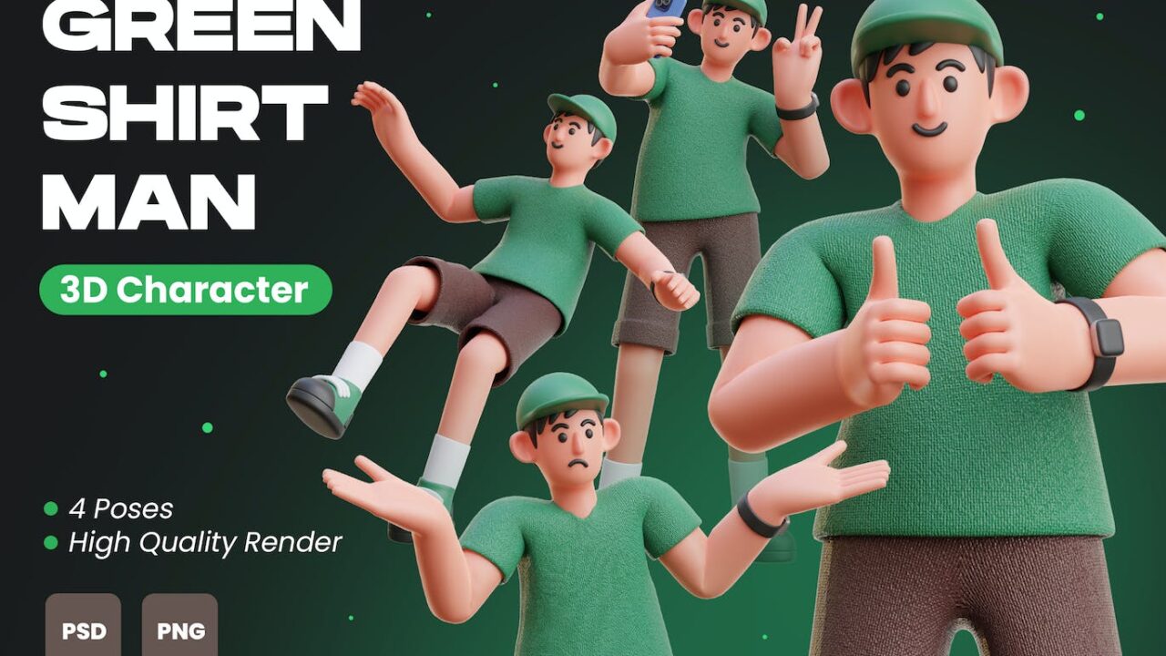 Gren Shirt Man 3D Character Illustration