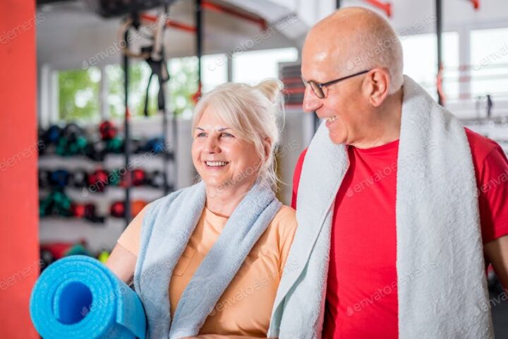 Senior couple ine the fitness club