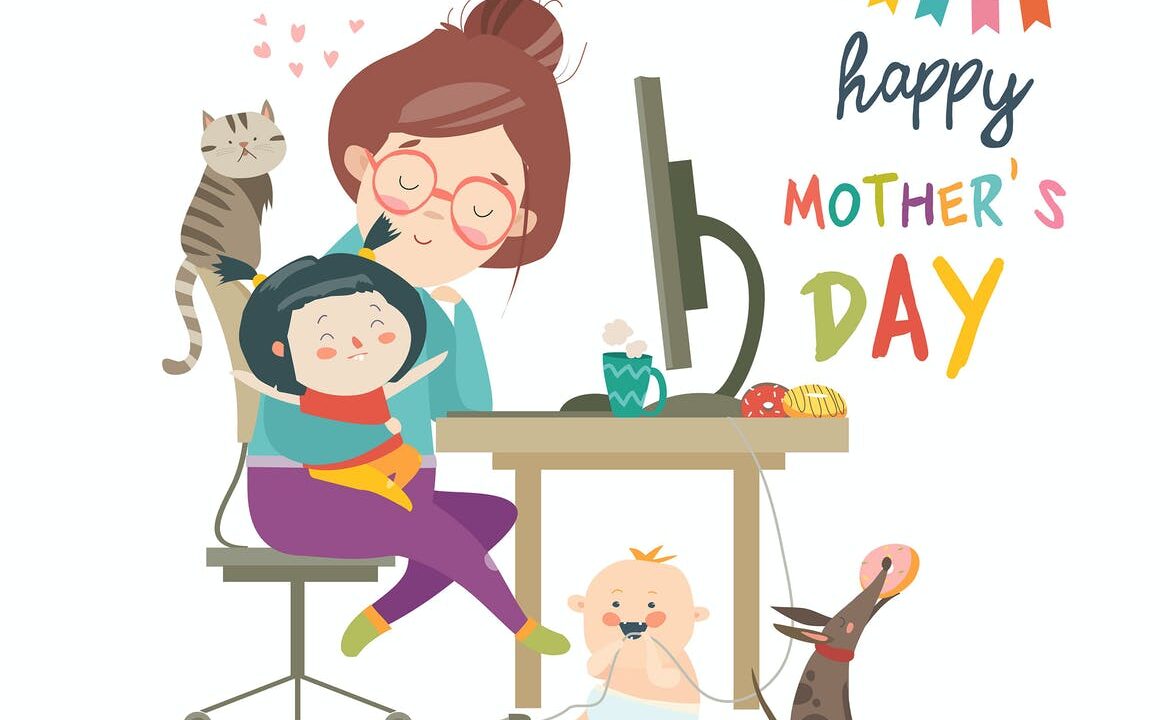 Working at home mother freelancer with two kids.