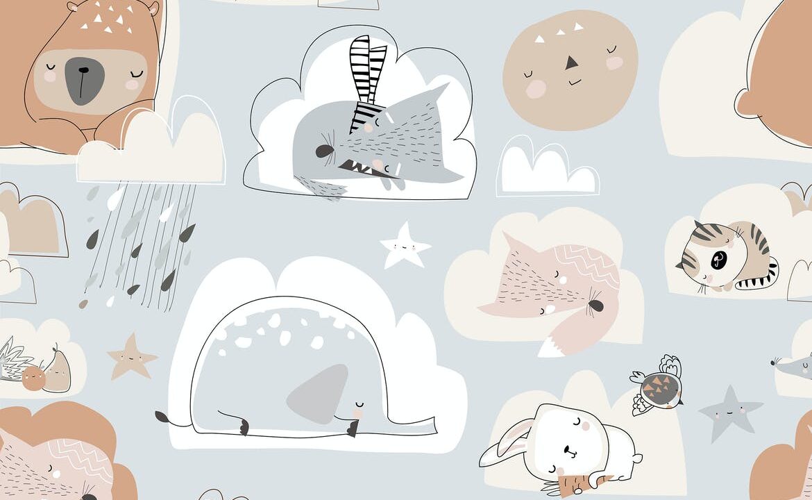 Vector seamless pattern with cute cartoon animals