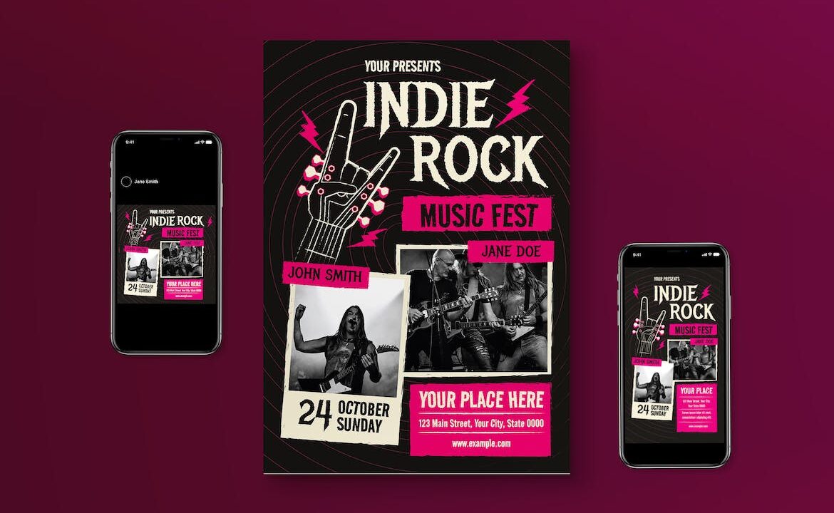 Black Inidie Rock Indie Music Flyer Set