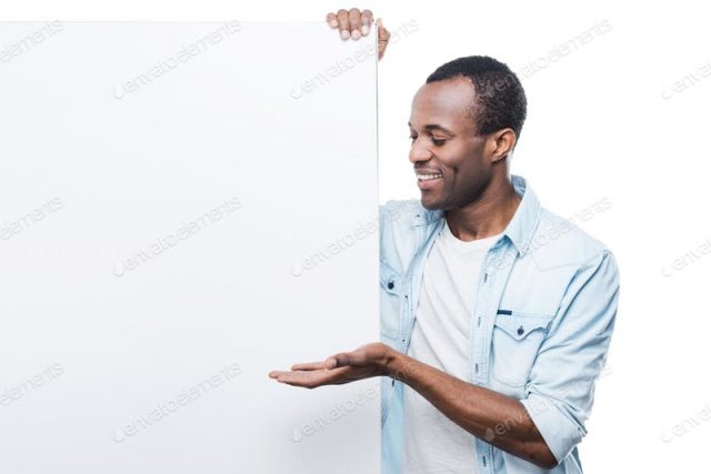 Cheerful presenter on your advertisement.