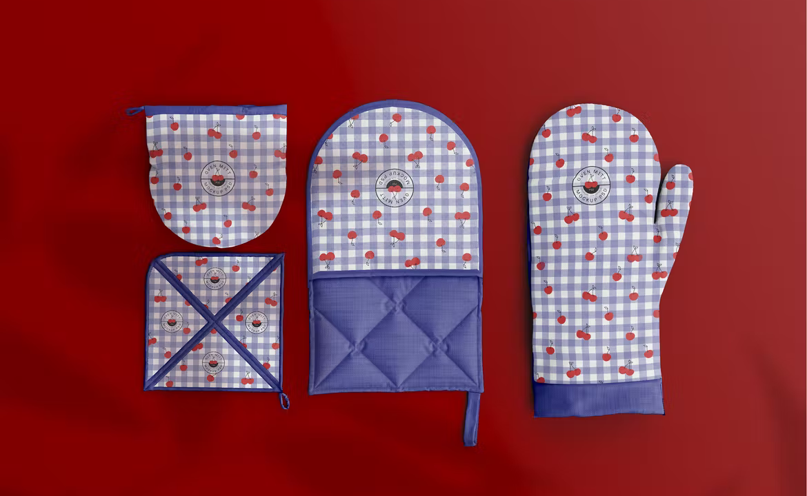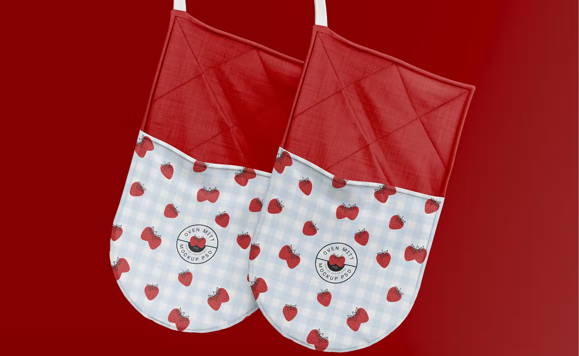 Oven Mitt and PotHolder Hanged from Bar in Kitchen