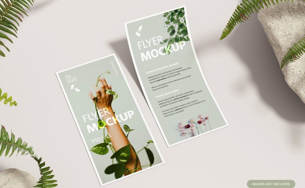 DL Flyer with Plants Realistic Mockup