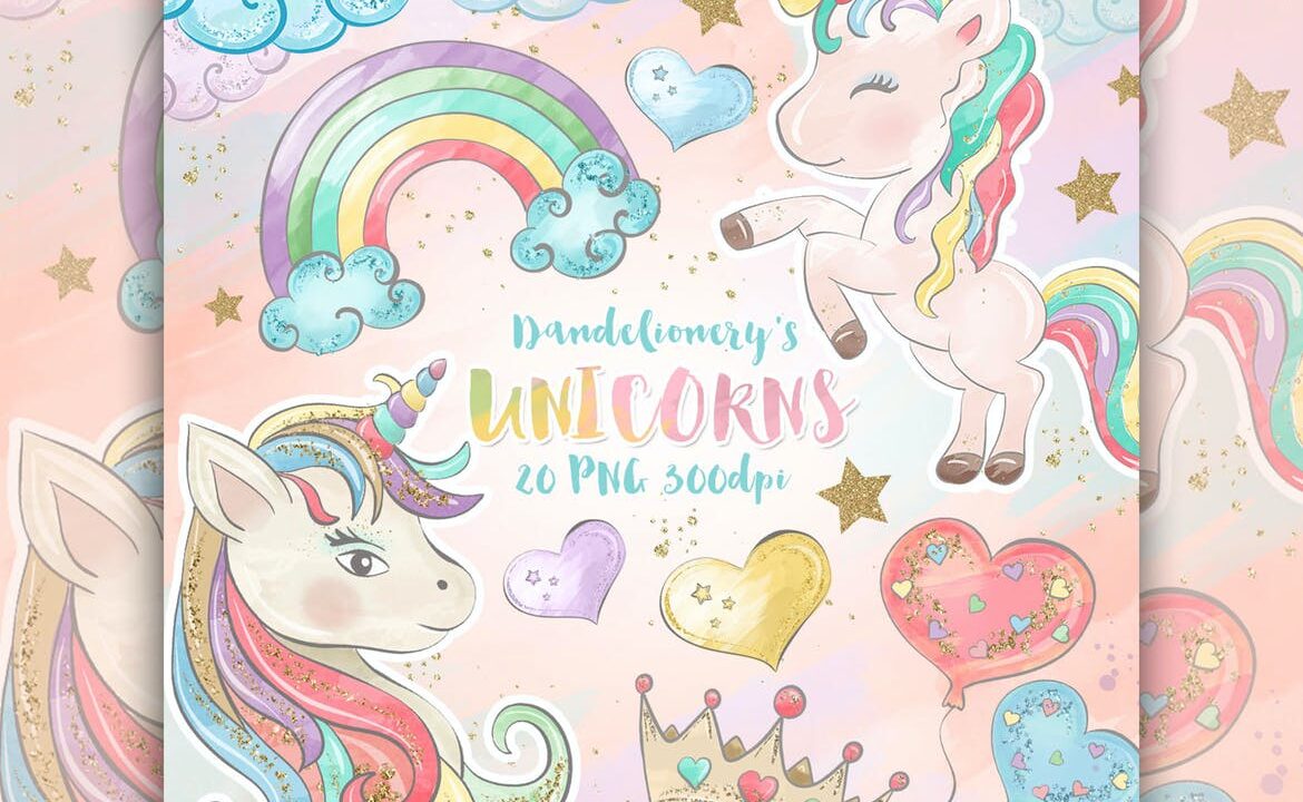 Watercolor Unicorns – Digital Paper Pack