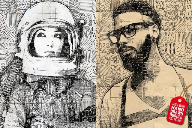 Delivery service woman receiving parcel from courier on doorstep illustration