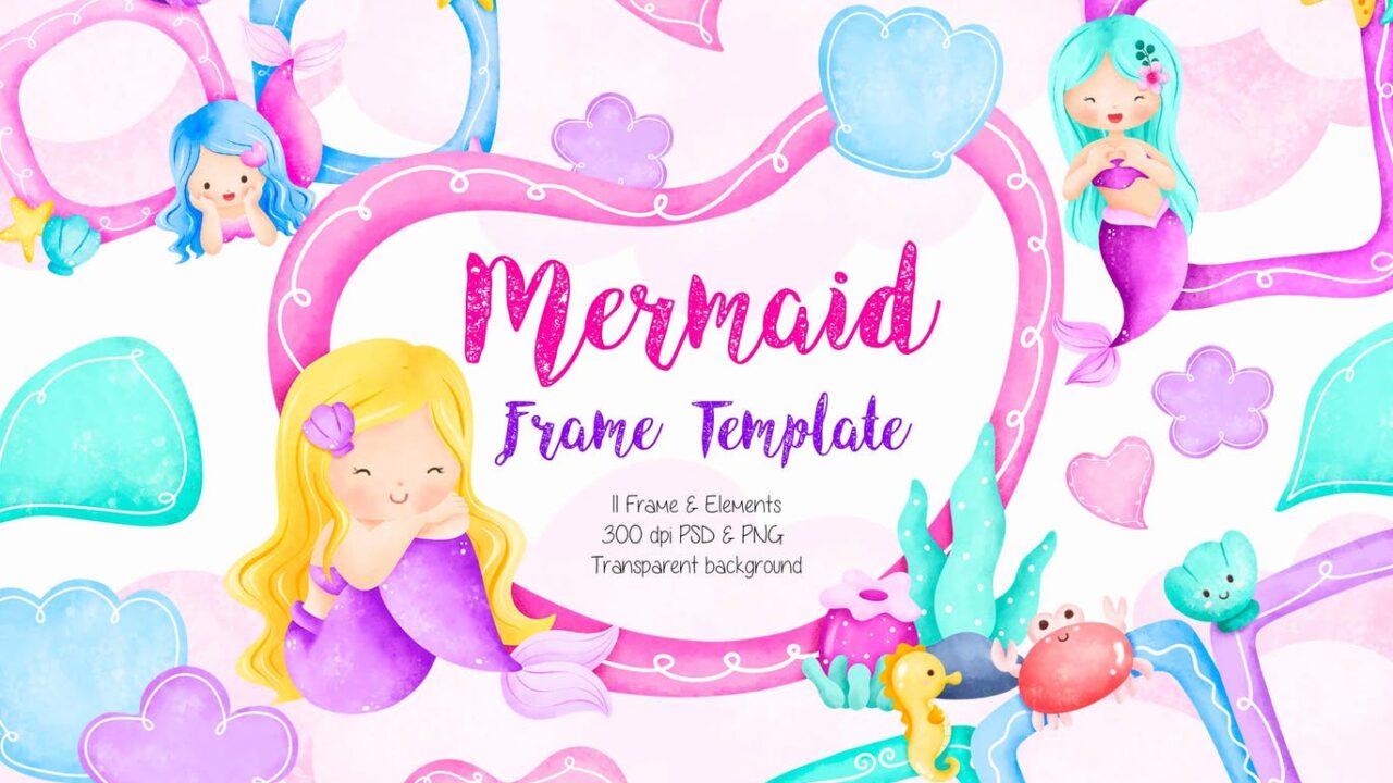 Watercolor Illustration Mermaid Frame