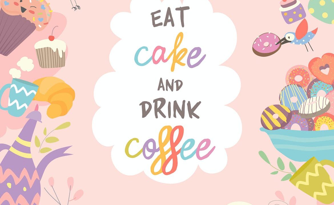 Cute frame composed of cup cake and coffee.