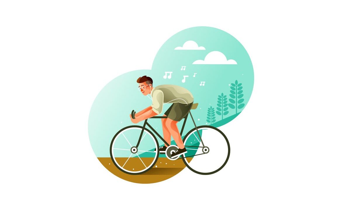 Youth riding a bicycle while listening to music