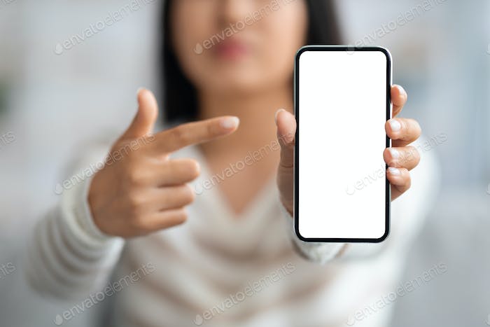 Unrecognizable Lady Pointing At Smartphone