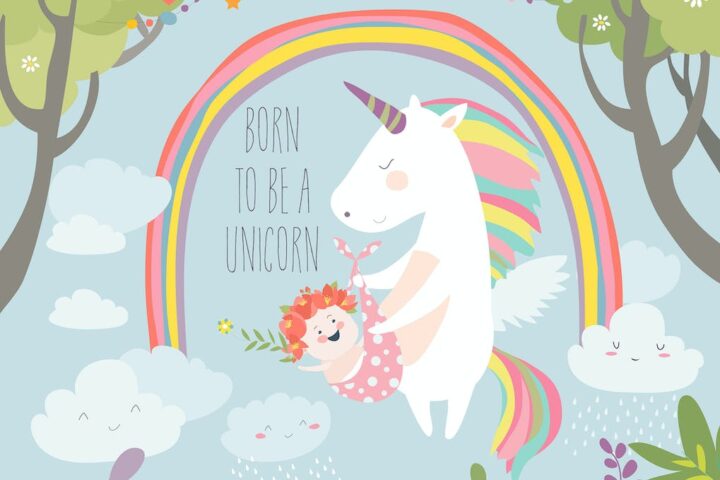 Cute unicorn holding baby Born to be a unicorn.