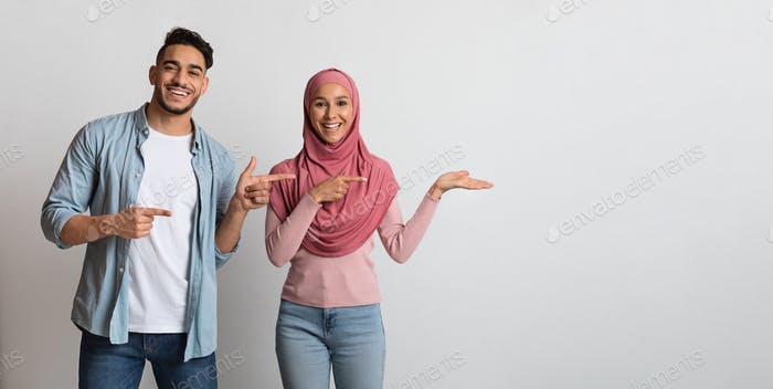 Banner For Advertisement With Happy Middle Eastern Family Of Three