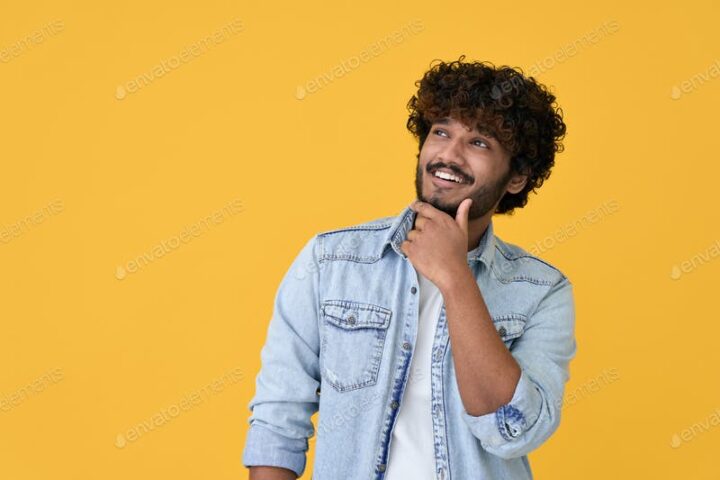 Curious young indian man looking
