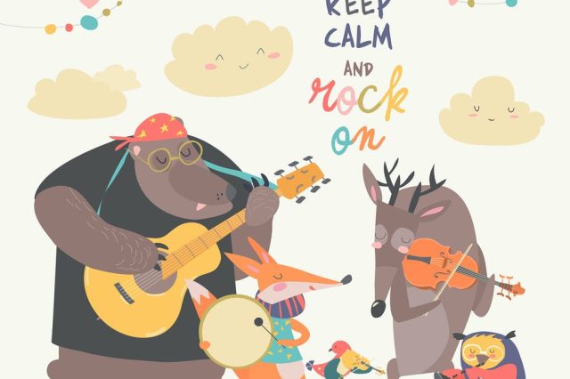 Cute animal music band Cartoon animals playing