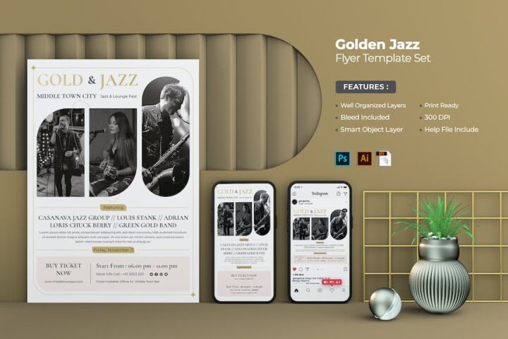 Golden Jazz Flyer – Instagram Post & Stories