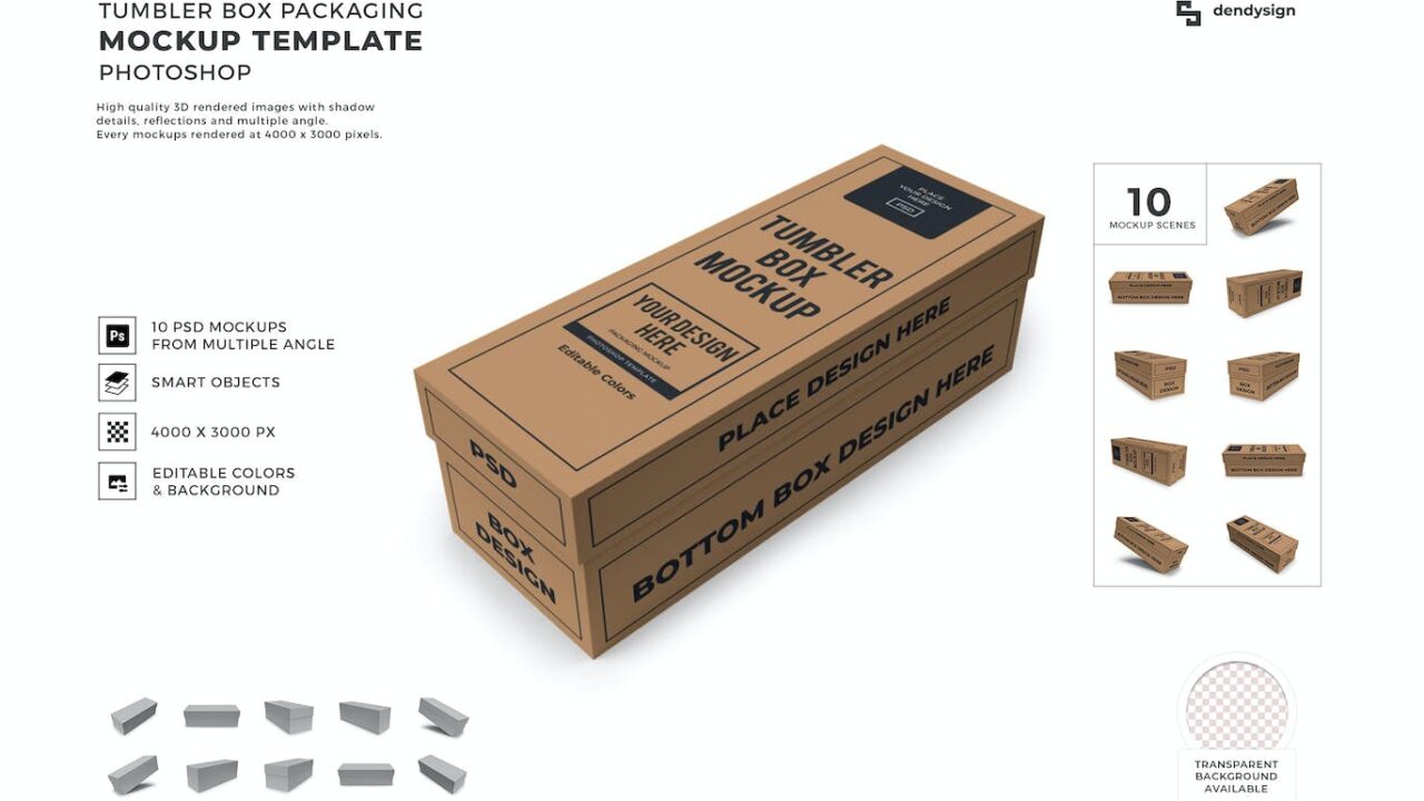 Tumbler Box Packaging Mockup Template Set