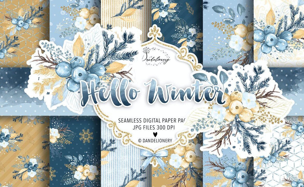 Watercolor Hello Winter digital paper pack
