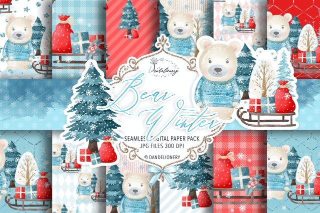 Bear Winter digital paper pack