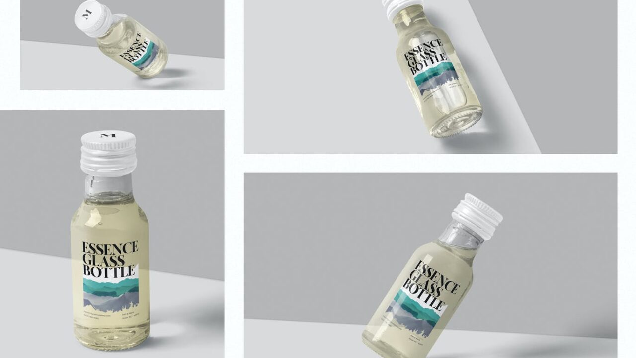 Metal Lid Small Glass Bottle Mockups