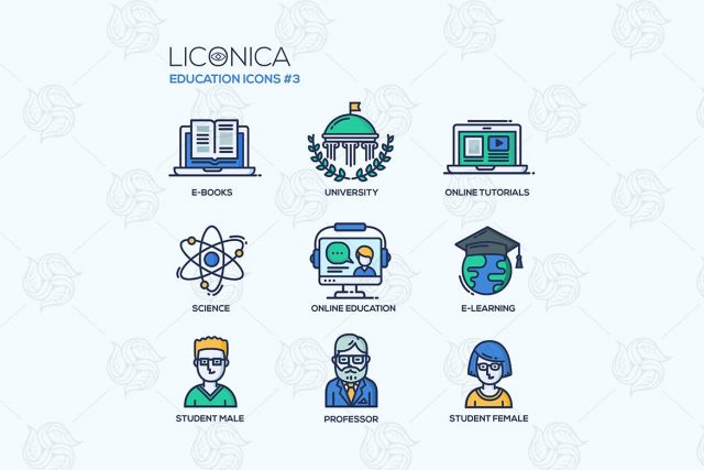 Modern school and education thin line design icons