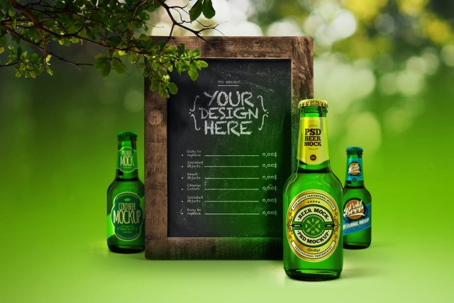 Beer Bottle Green 7 oz 20 cl Poster Frame Mockup