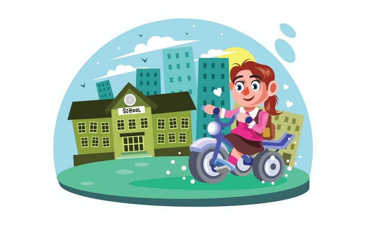 Young Girl go to School Vector Illustration