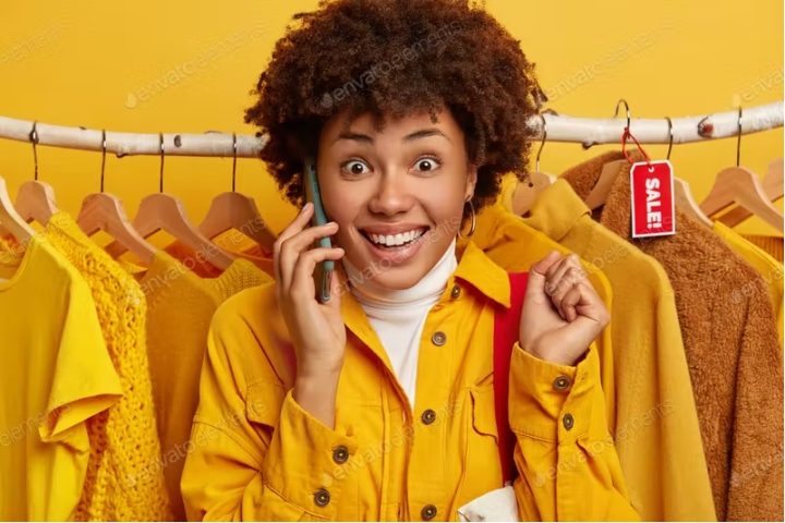 Black Woman Showing Phone Empty Screen Advertising Application In Store