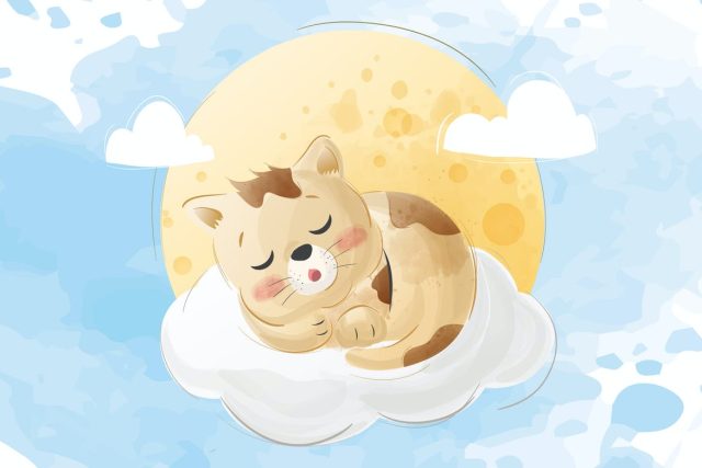 Cute Bear Sleeping With Moon Illustration Cartoon