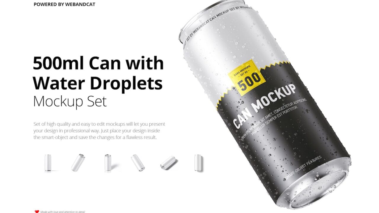 500ml Can Mockup with Water Droplets