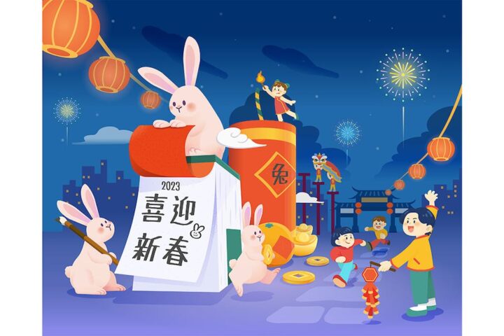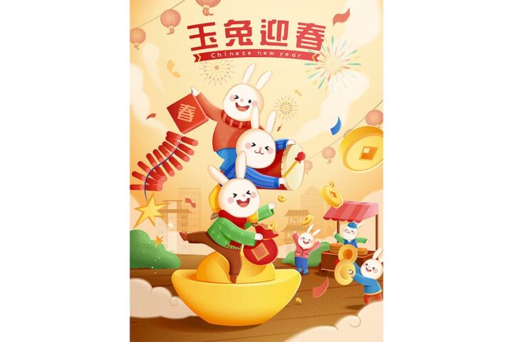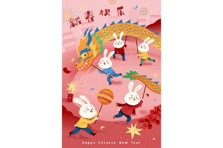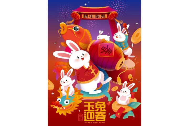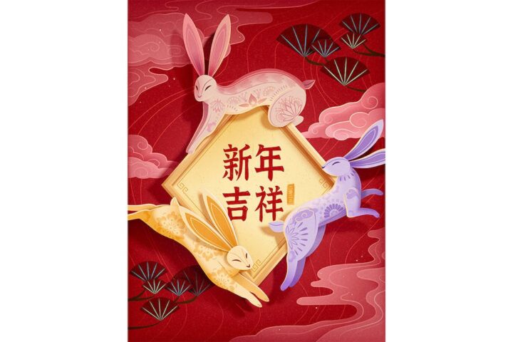 Chinese New Year Rabbit Zodiac Seamless Pattern