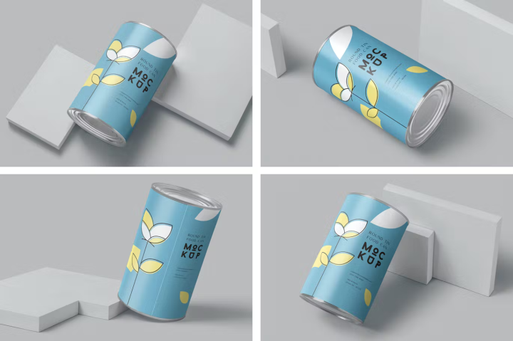 Try these tin can mockups to showcase your edibles tin can packaging designs. You can change the design, color, shadows, effects and background just by using its well-described layers and smart object option.