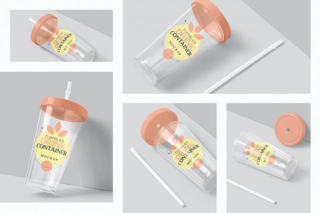 These beautiful tumbler drink container mockups will help you showcase your packaging designs uniquely. Featuring smart object option that will help you add your designs with a single click. These mockups also offer intelligent layers to customize the shadows, effects and background.