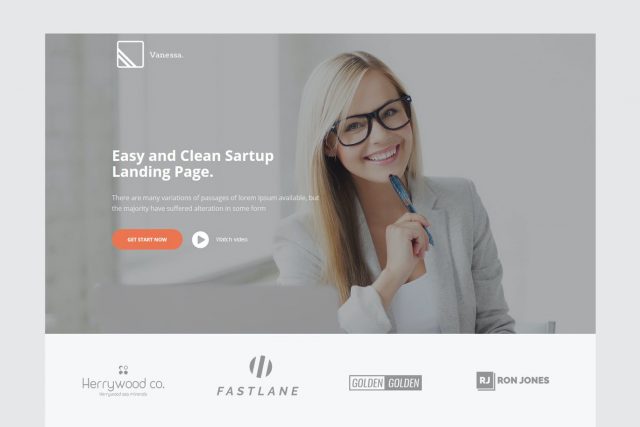 Vanessa – Easy Startup Landing Page with Light and Modern design.