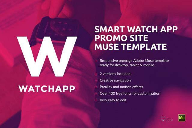 WatchApp is a responsive one page Adobe Muse template for promotion your Smart Watch App on the web. You can easy create your own website without writing code! Add your app logo, info, press release, video trailer, screenshots, testimonials. Set price plans and show all app features! You can change colors in few clicks, texts or replace the images and use over 400 free webfonts! This template included desktop, tablet and mobile versions!