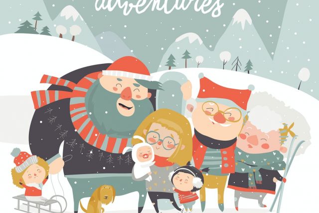 Winter season background people characters. Winter outdoor activities. People have fun. Vector illustration