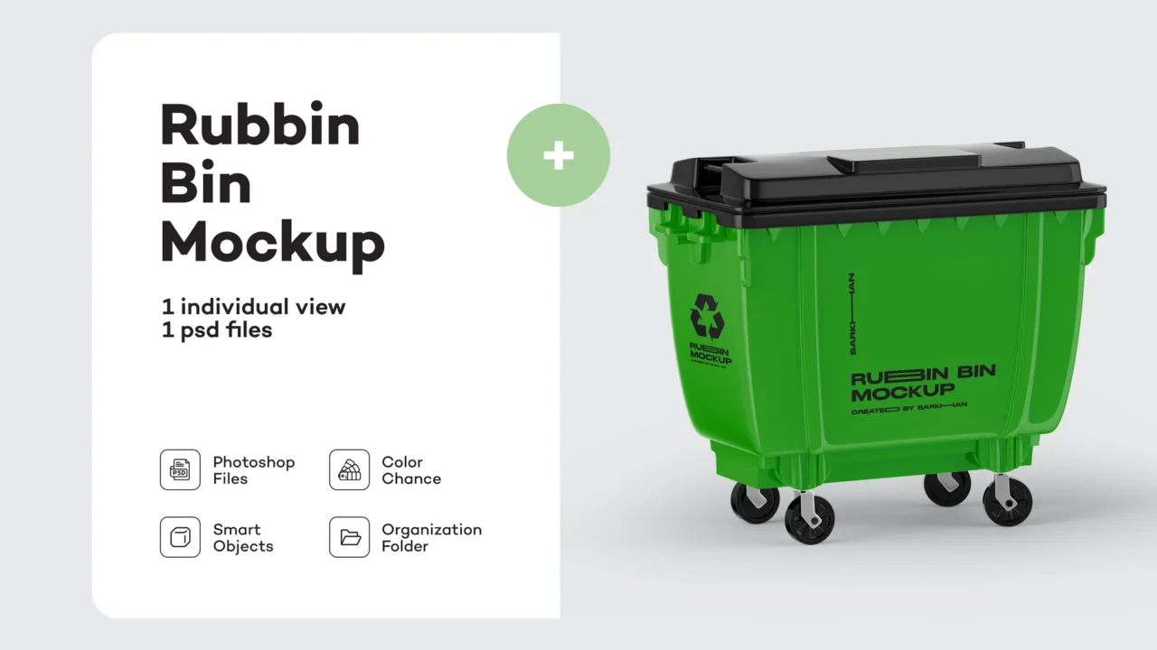 Plastic Glossy Rubbish Bin Mockup