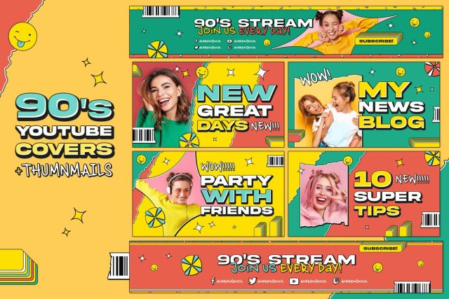 Get back to the nineties with these funny templates. Vivid colors for your cheerful mood. Cute retro elements created with a bit of nostalgia. Create YouTube thumbnails for your videos within couple minutes! Edit texts and put your photos. It’s so easy!