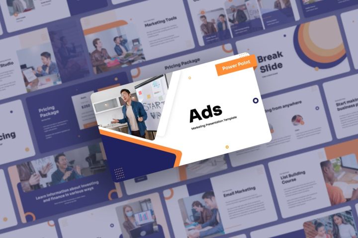 Ads is a clean and minimalist presentation template that can be used for marketing needs.