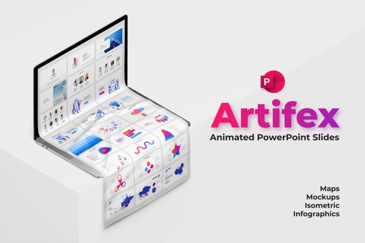Animated PowerPoint Presentation templates. Photo slides, infographics, maps, isometric illustration, mockups and icons.