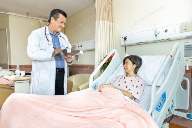 Hospital ,Doctor ,Patient, Discussing ,Consultation, Professional, Reassuring, Consultant, Recovery, Specialist, Bed, Surgeon, Talking, Ward, Asian,