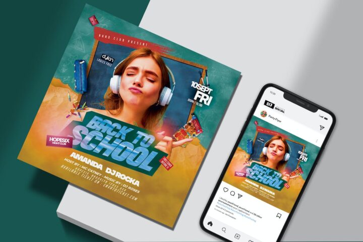 Back To School Party Flyer for bar, pub, restaurant to promote Night Club .