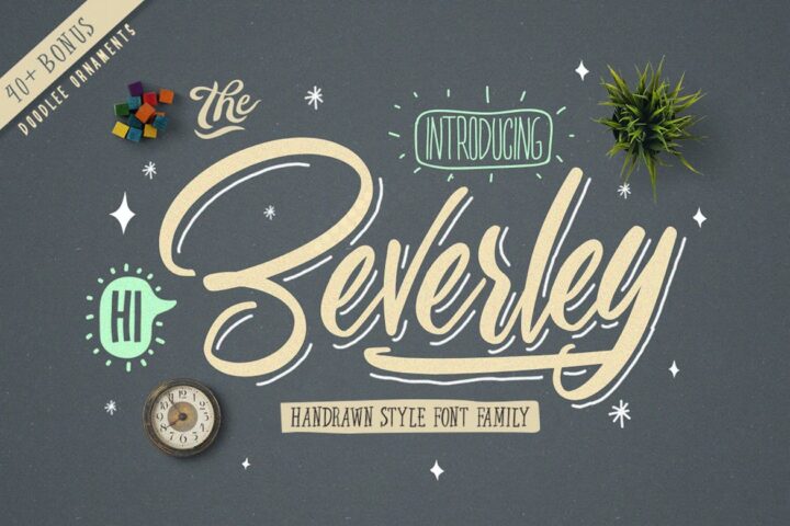 Beverley Script ( OTF ) Beverley Sans Serif ( OTF ) Beverley Serif ( OTF ) Beverley One Stroke ( OTF ) Beverley Ornaments ( AI & EPS )