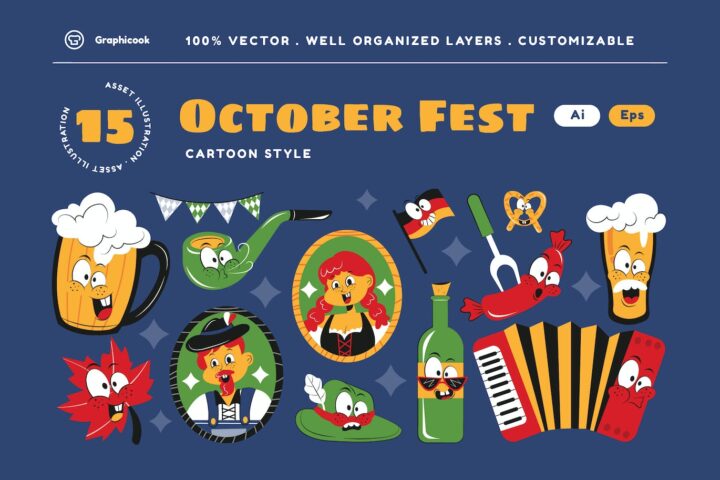 Blue Cartoon Oktoberfest Illustrations is an illustration that is excellent for you to create your own scene composition for your upcoming website, apps, landing pages, and presentation page clipart/illustration projects.