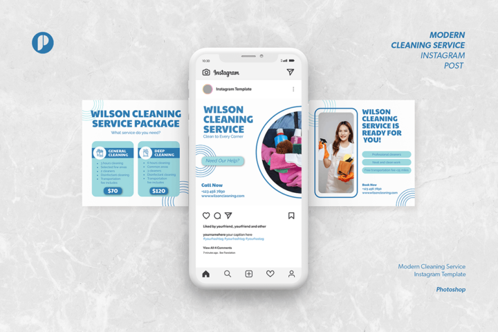 Bubble Blue Modern Cleaning Service Instagram Template provides you with 9 different and unique designs for Instagram posts and stories, available in the PSD format file. This template is adjustable and customizable. You can edit the template’s image, color, and text based on your preference and taste using Adobe Photoshop to fit your needs.